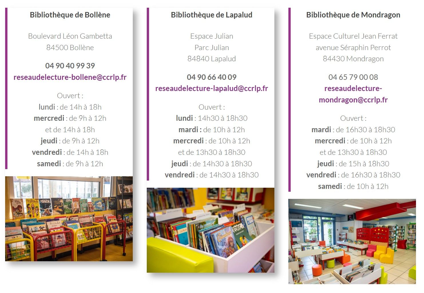- une seule carte pour accéder aux 3 bibliothèques et à l’ensemble de leurs collections (romans, documentaires, presse et revues, livres audio, jeux de société, ressources numériques…)